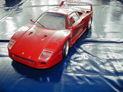 Ein Ferarri F 40. Von witem sieht er ganz gut aus, näher betrachtet sieht man aber die kleinen Fehler, am deutlichsten die verschmierte Frontscheibe.